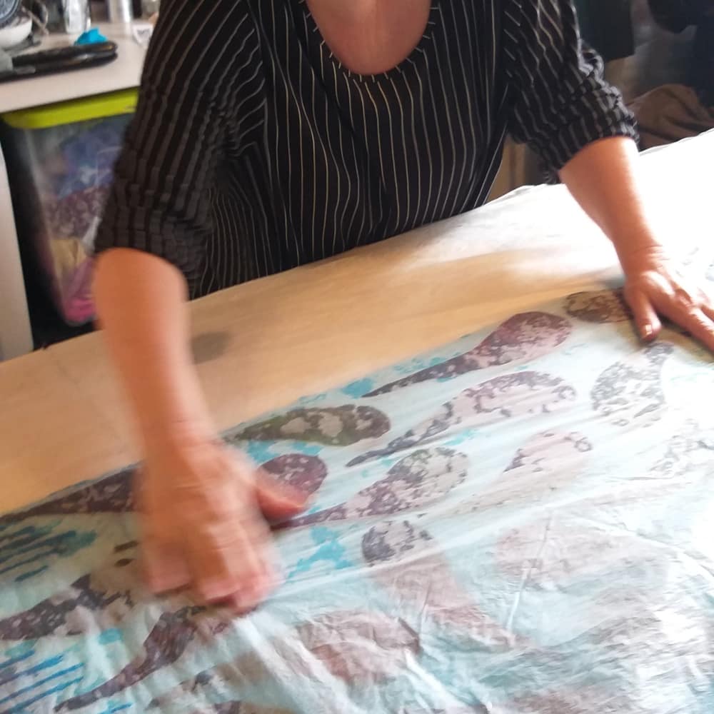 De laatste twee, drie jaar heb ik me toegelegd op het nunovilten. Nuno felting is een stof verwerkende techniek, ontwikkeld door Polly Stirling, een vezelkunstenares uit New South Wales, Australië, rond 1992. De naam is afgeleid van het Japanse woord nuno, wat betekent “stof”. De techniek bindt losse vezels, meestal wol, in een pure stof zoals zijdegaas, waardoor een lichtgewicht vilt wordt gecreëerd. Ik werk hiervoor met fijne merinowol en chiffonzijde om mijn sjaals te maken. Afhankelijk van de inspiratie worden ook nog andere materialen verwerkt (zijdedraad, kant, allerlei vezels, ander wol soorten zoals mohair, wensleydale, … )